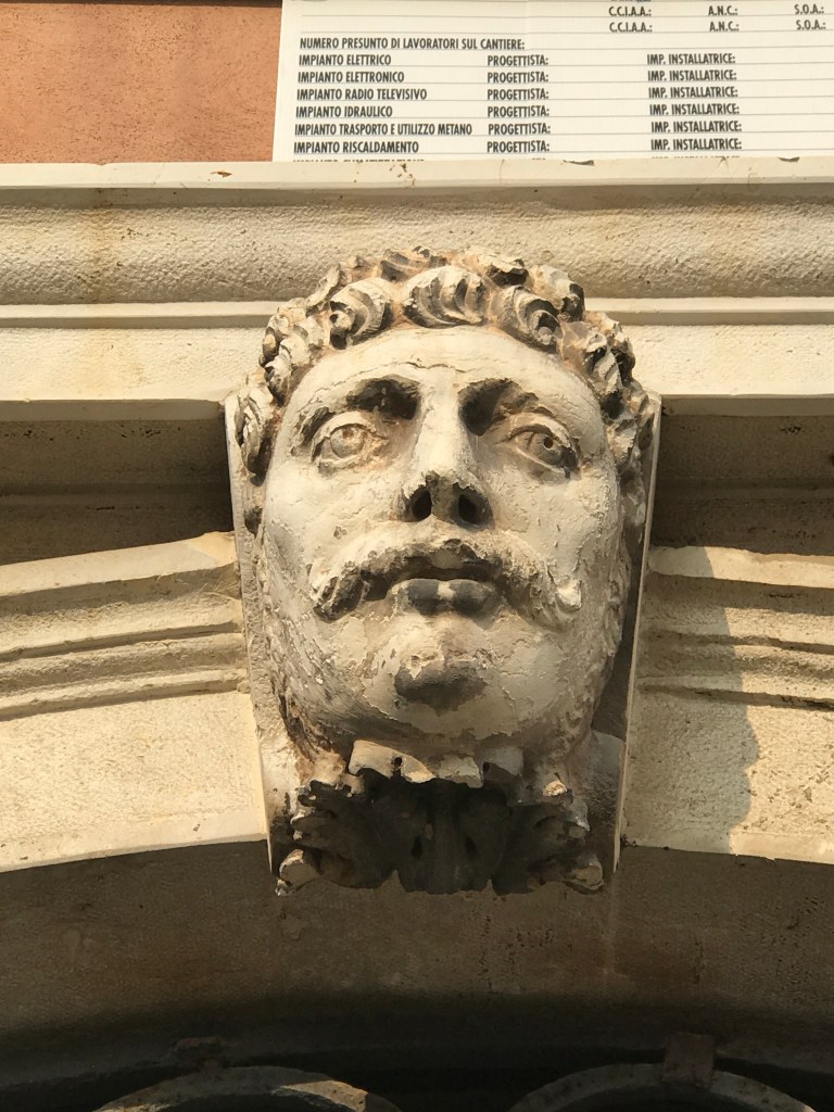 We decided we would begin by focusing on the mascaroni, the keystones that decorate and hold up the archways throughout the city and the ubiquitous figure sculptures that adorn every piece of architecture. It’s public art that’s been here for centuries, but is often overlooked. They are mostly faces, but sometimes also animals or boats. They feel like they are watching us as we wander.