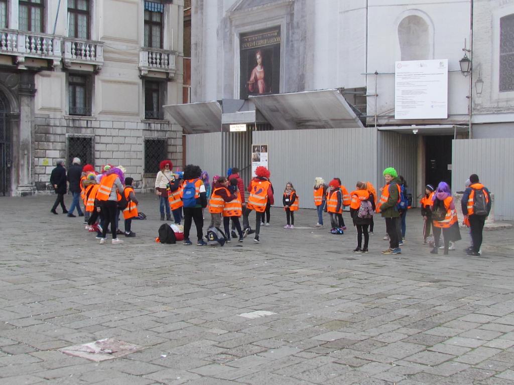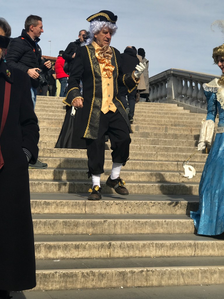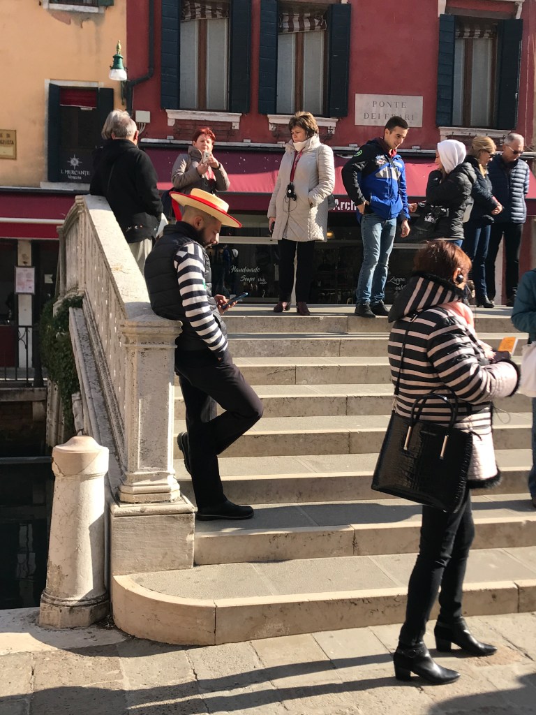 Stepping out from the basillica into the Campo we were greeted with the surreal sights and sounds of gondoliers on their cell phones, tourists in Carnivale garb, school children in costume, musicians playing in the streets, and even the Amazon delivery boat in the canal. What a way to start the day!
