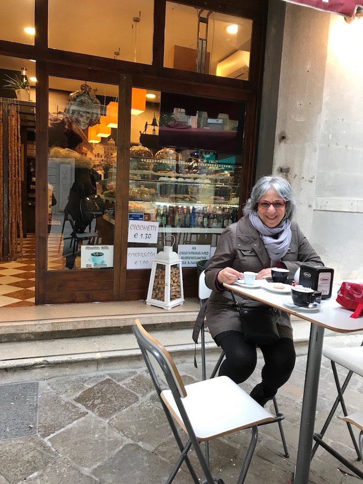 We are not immune to the lure of the pastry shops. Enjoying a cuppa on the way home.